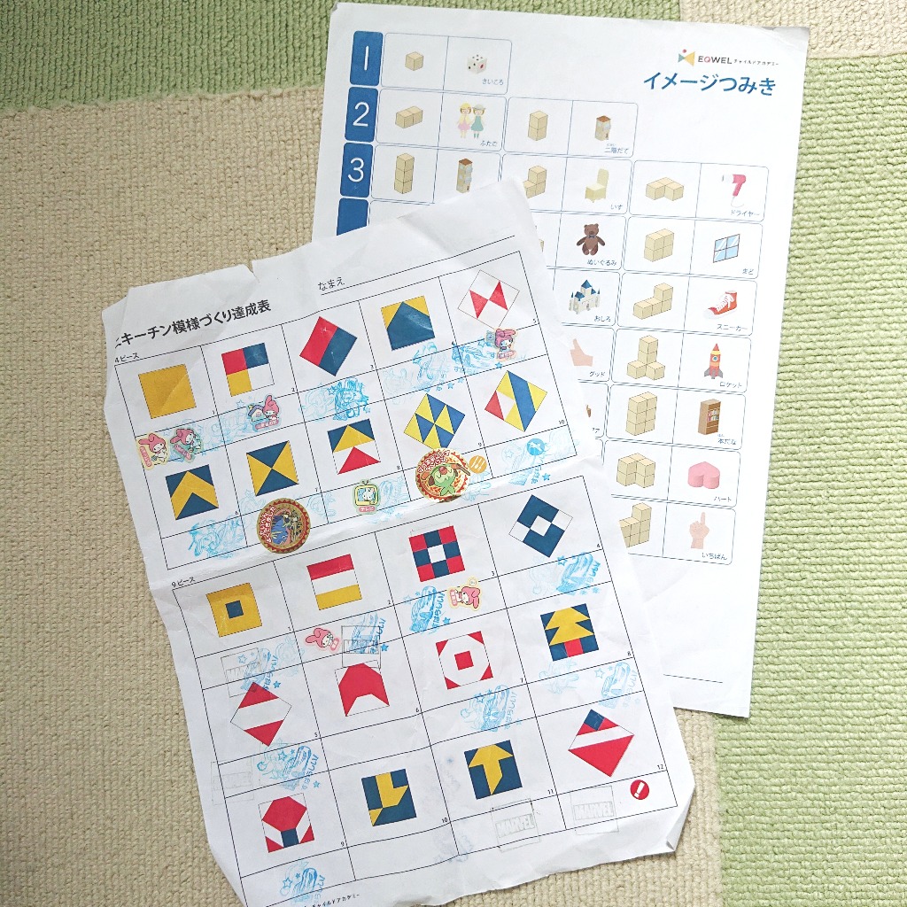 我が子には、ご褒美(スタンプかシール)が合っていたようで、順調に進み、年少の終わりまでに全てのイメージ積木を覚えてくれました!