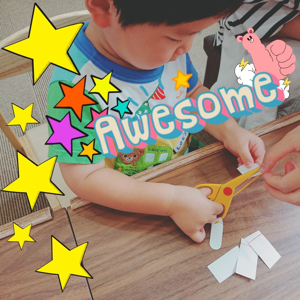 『チョキンッ』ができたら、たくさん褒めてあげてくださいね♥️ 「上手に切れたね!」「集中して切れたね!」など、具体的にどうよかったのか褒めてあげるとお子さまのやる気、継続に繋がります🍀