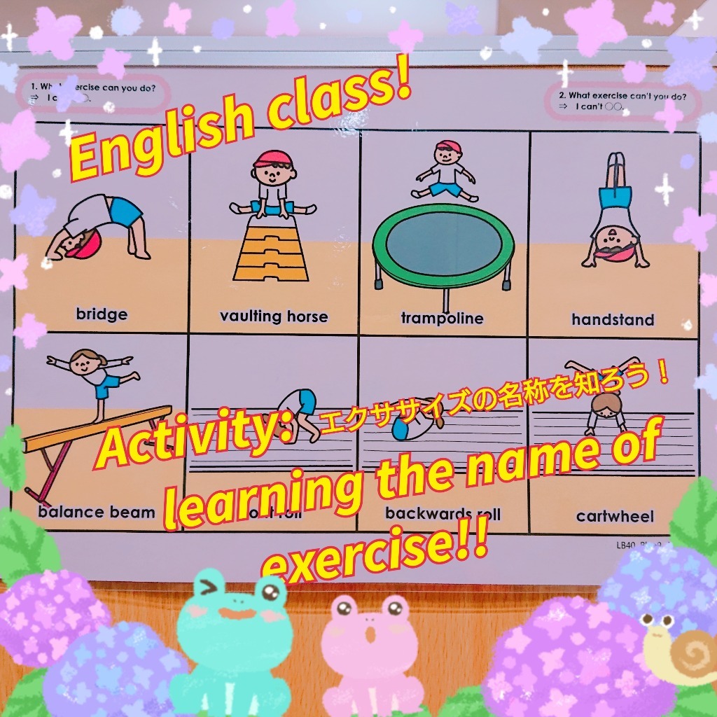 エクササイズの名称をからだを使って学びますよ✨ 実際にエクササイズを行いながら、単語を発するので、記憶にも残りやすく、オススメですよ🤩