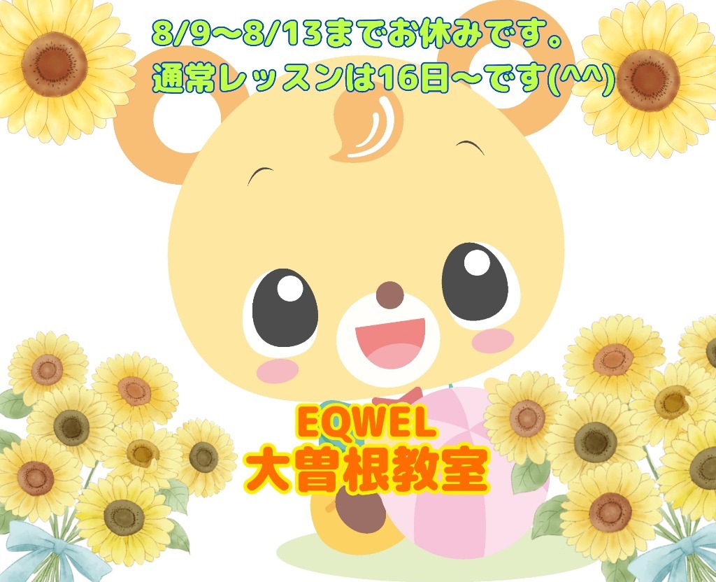 8/9~8/13は教室はお休みです。